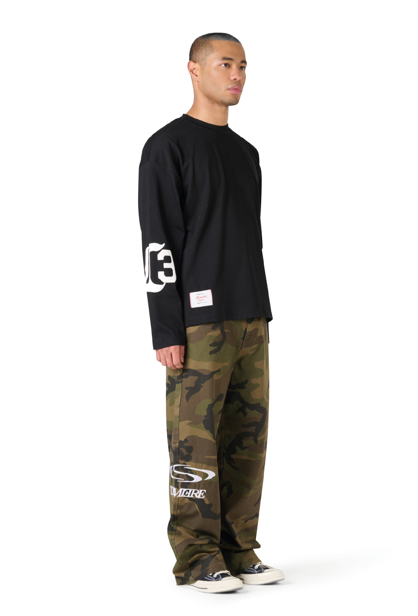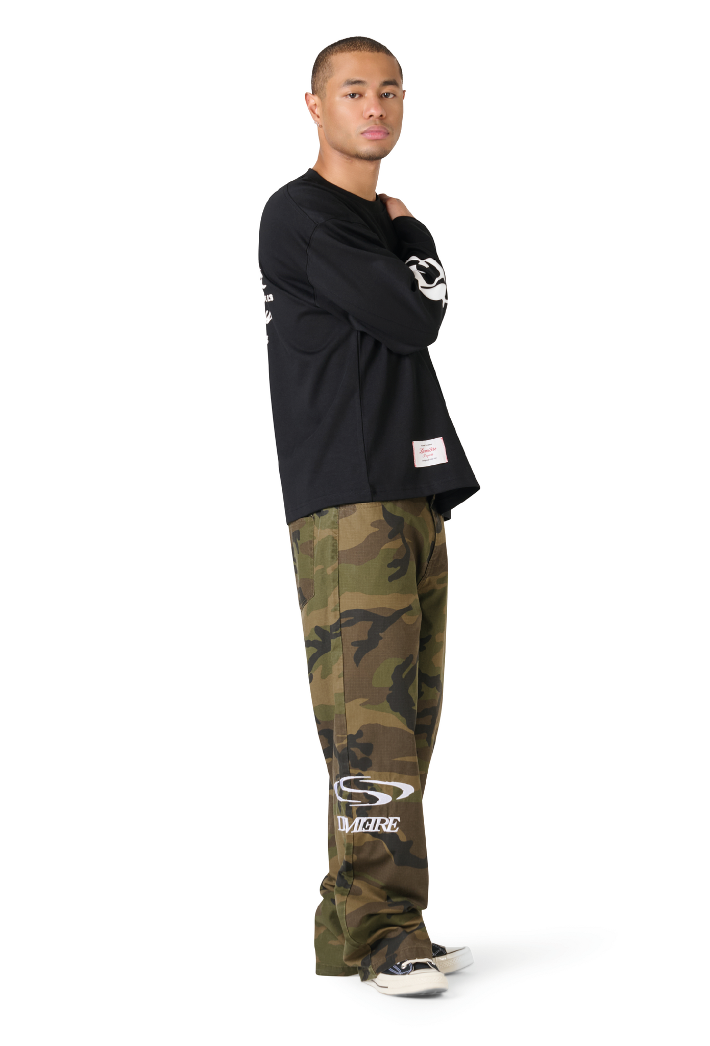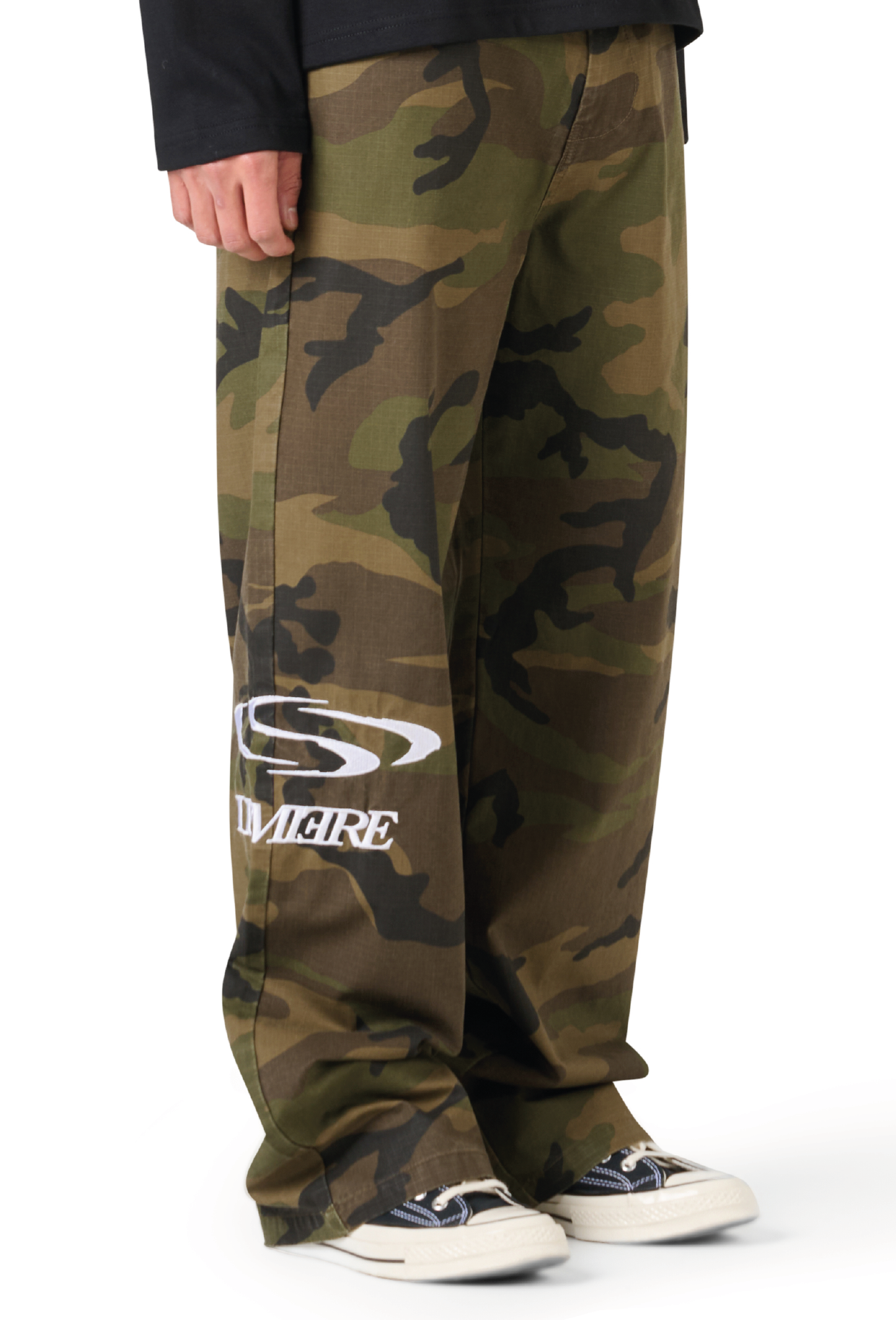 The Camouflage Pants bring a bold yet versatile edge to your wardrobe. Designed in a camo colorway with a regular fit and straight legs, they offer a relaxed, baggy look. Finished with an embroidered Wave logo, they pair easily with other statement pieces.