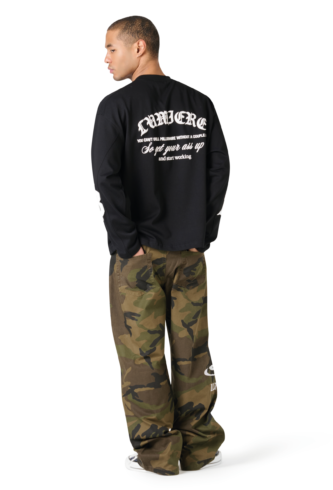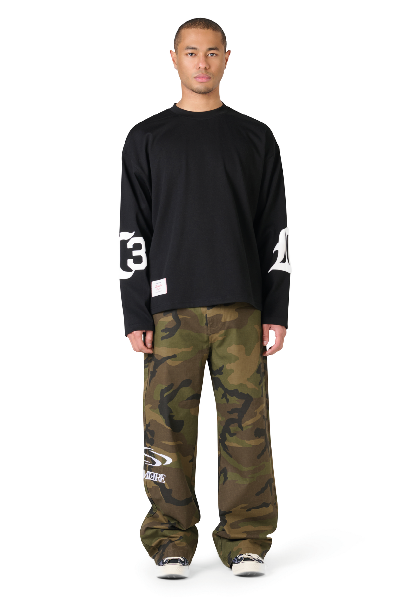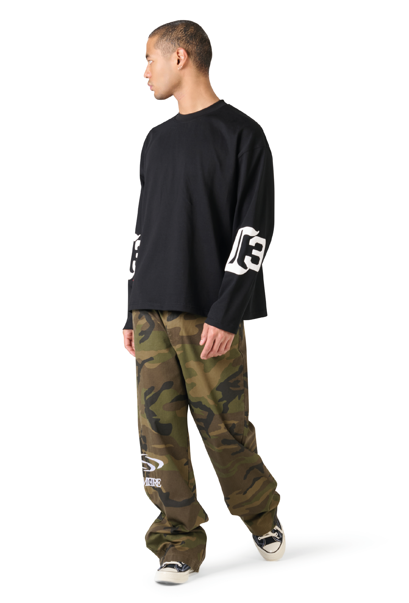 The Camouflage Pants bring a bold yet versatile edge to your wardrobe. Designed in a camo colorway with a regular fit and straight legs, they offer a relaxed, baggy look. Finished with an embroidered Wave logo, they pair easily with other statement pieces.