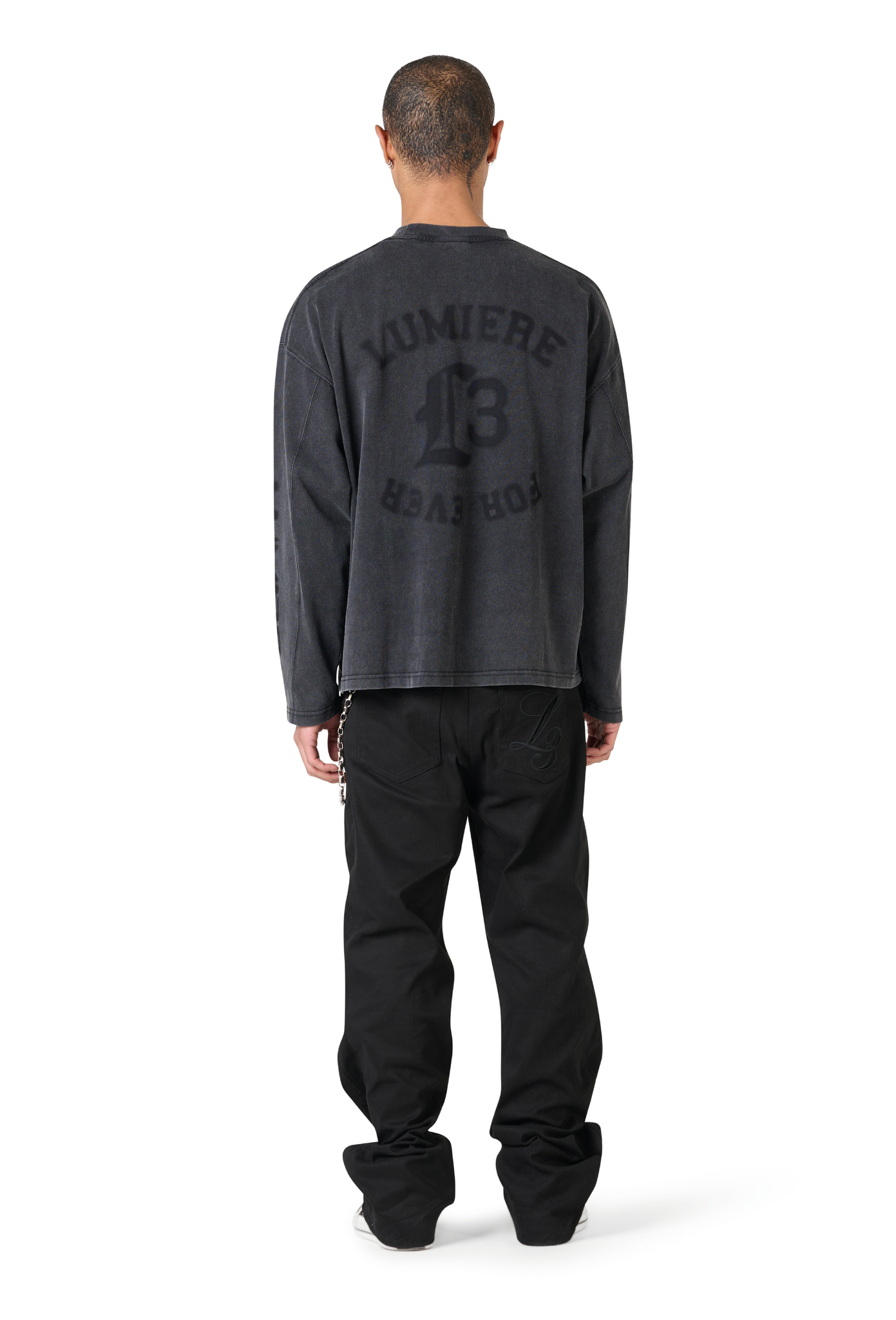The For Ever Washed Longsleeve brings a vintage-inspired edge to modern streetwear. Designed in washed grey with an oversized boxy fit, it features L3 Lumi3re For Ever branding and sleeve logos, creating a relaxed yet expressive everyday essential.