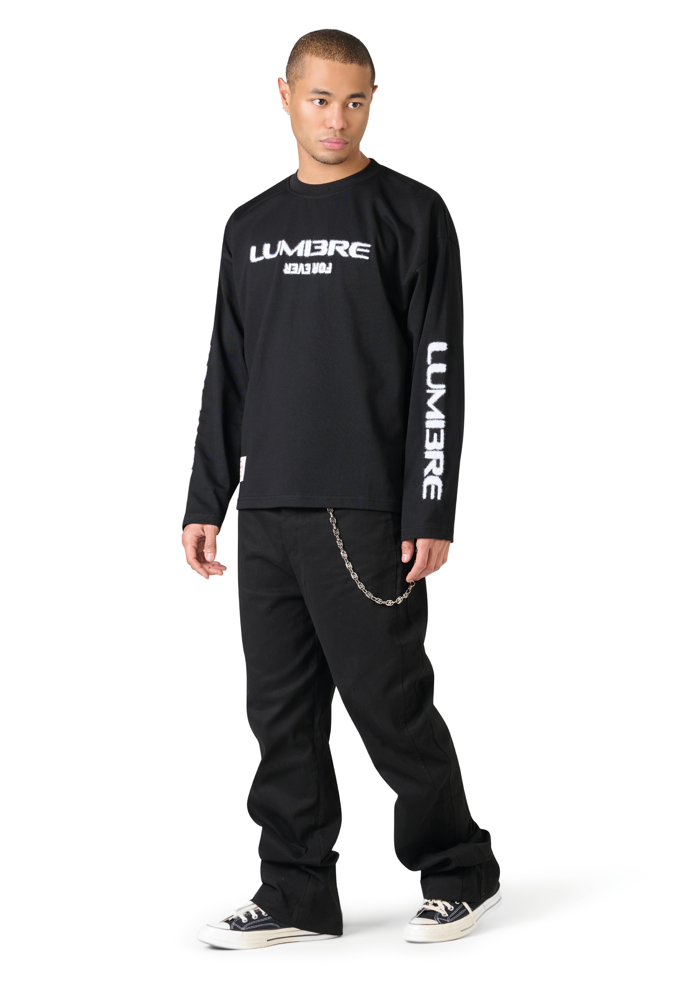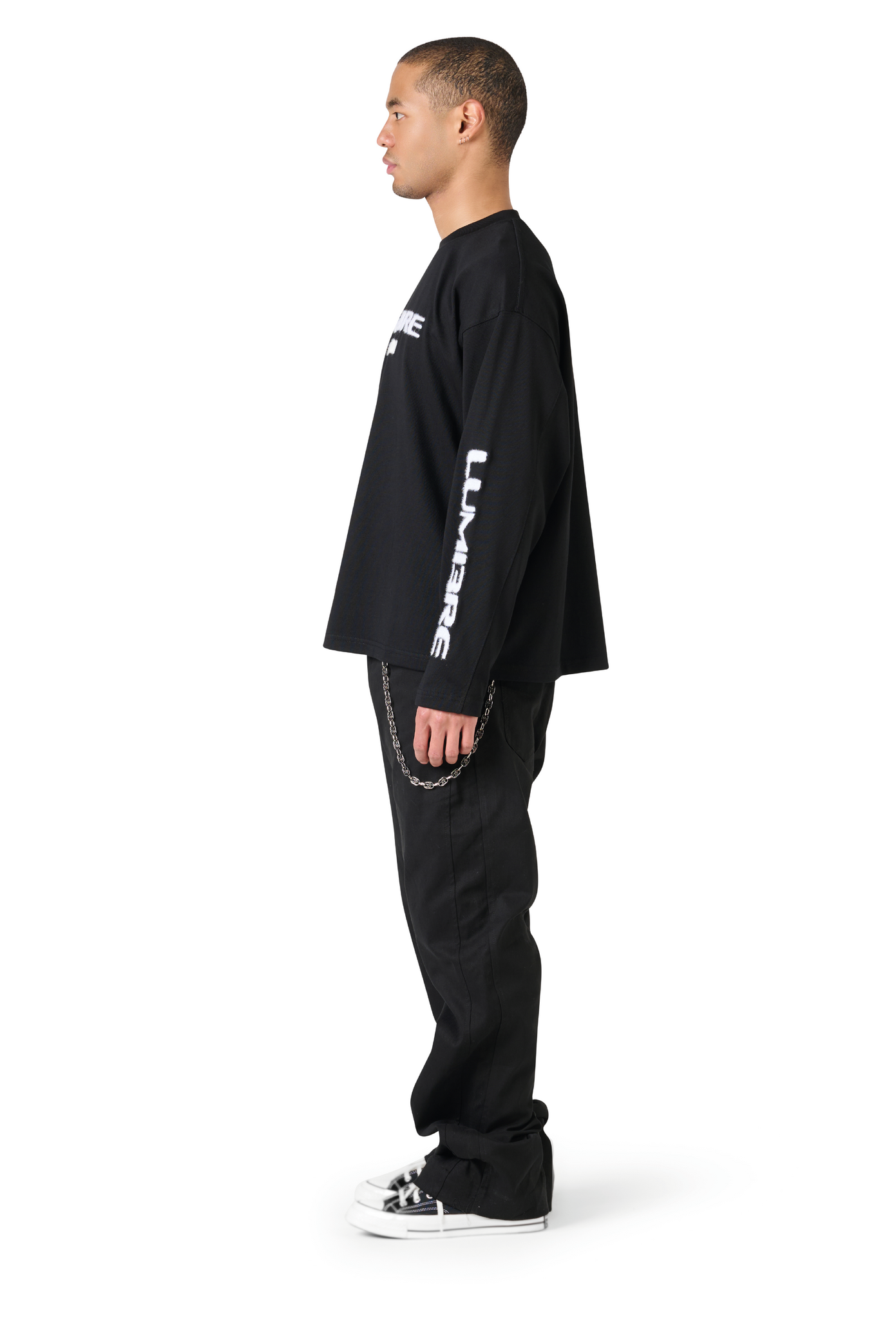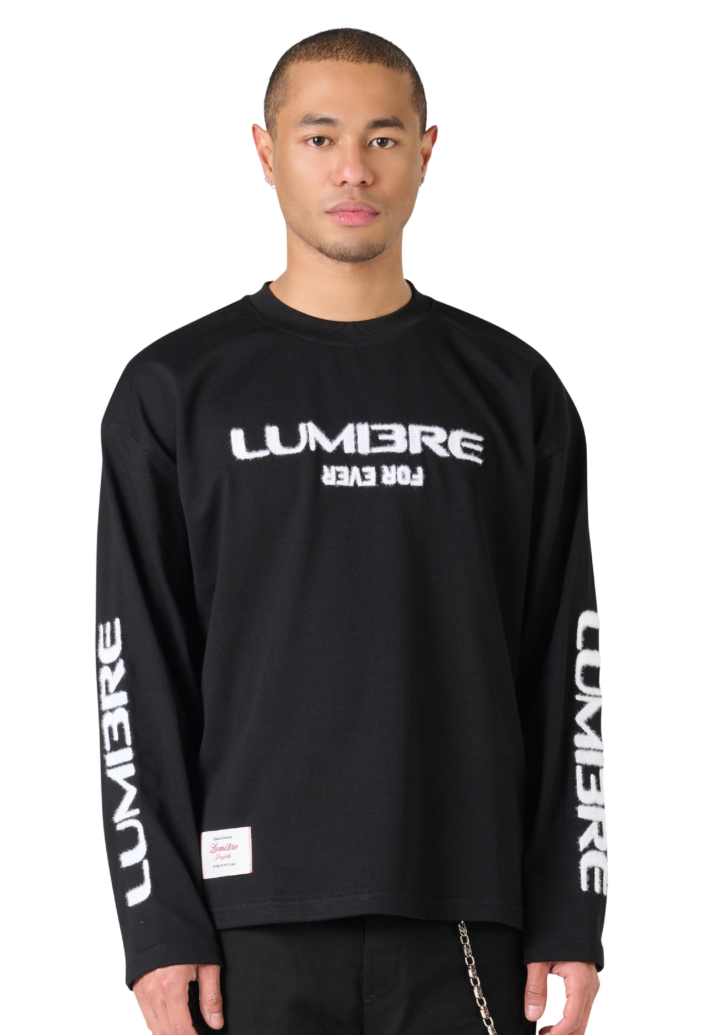 The Lumi3re For Ever Longsleeve stands out through texture and detail. Designed in black with an oversized boxy fit, it features puffy Lumi3re logos on the chest and sleeves. A bold yet wearable piece that reinforces the brand’s signature identity.