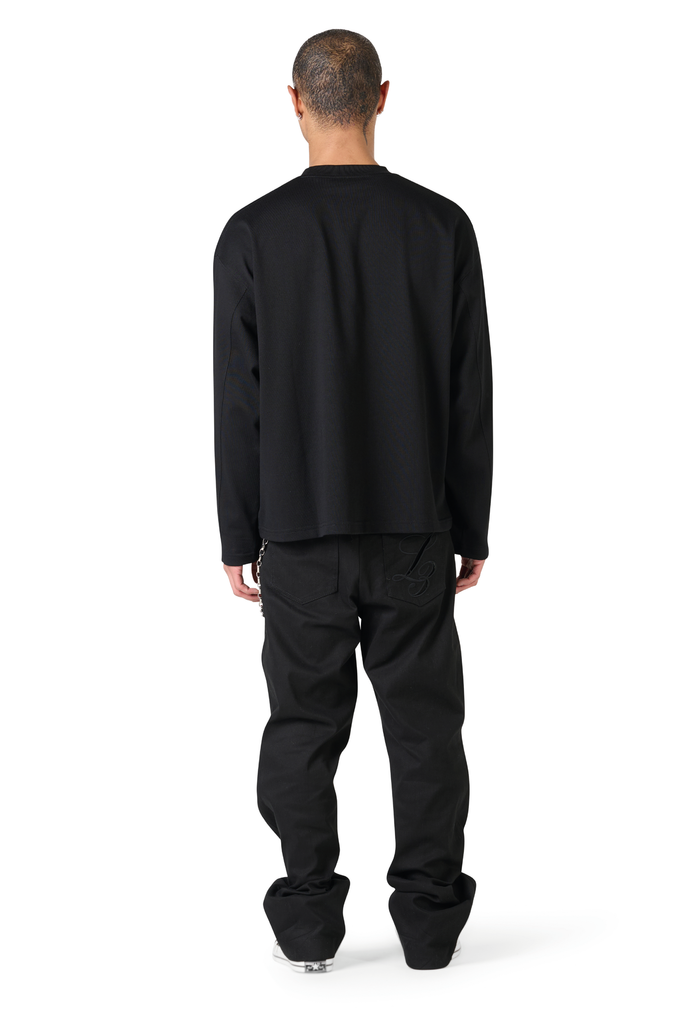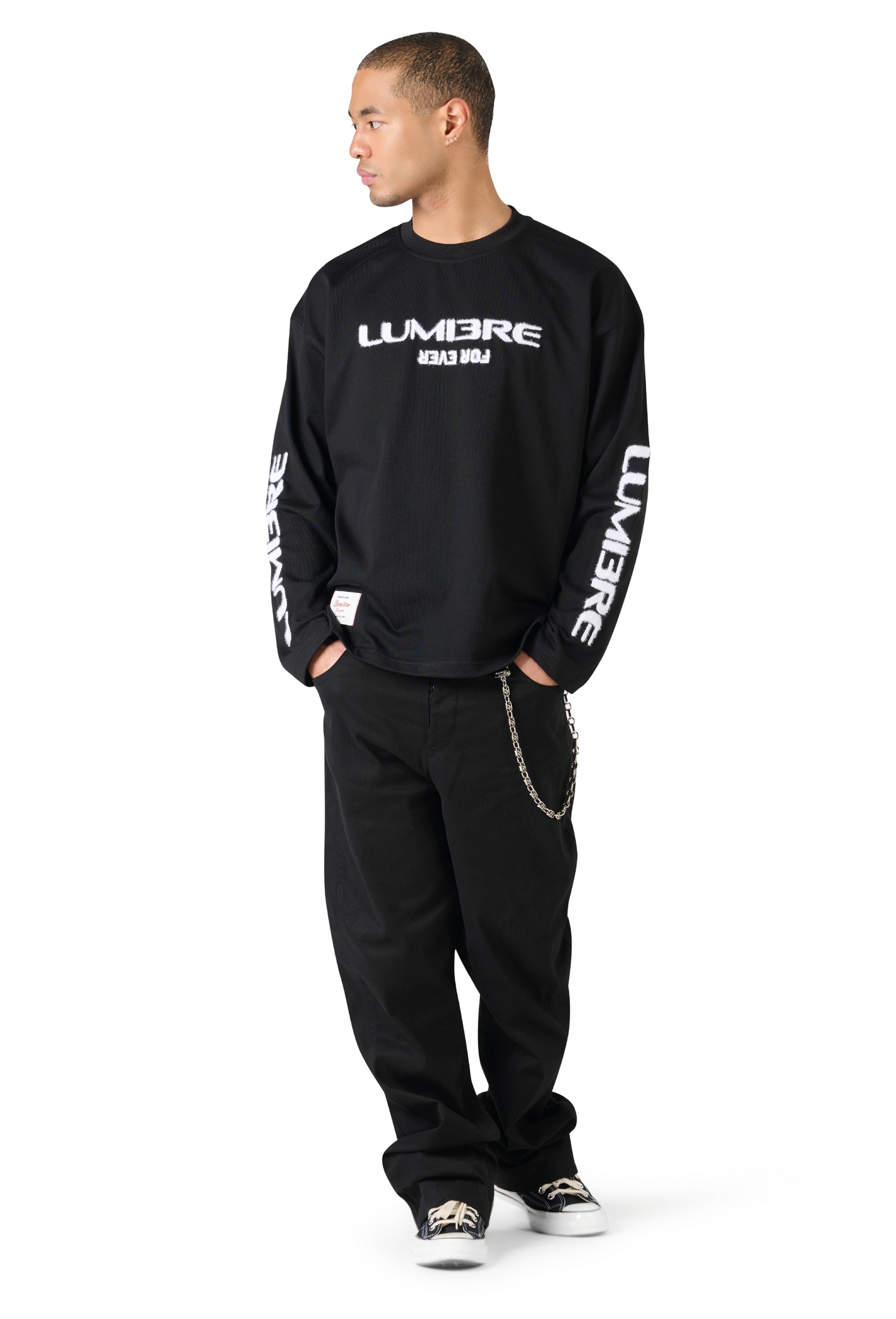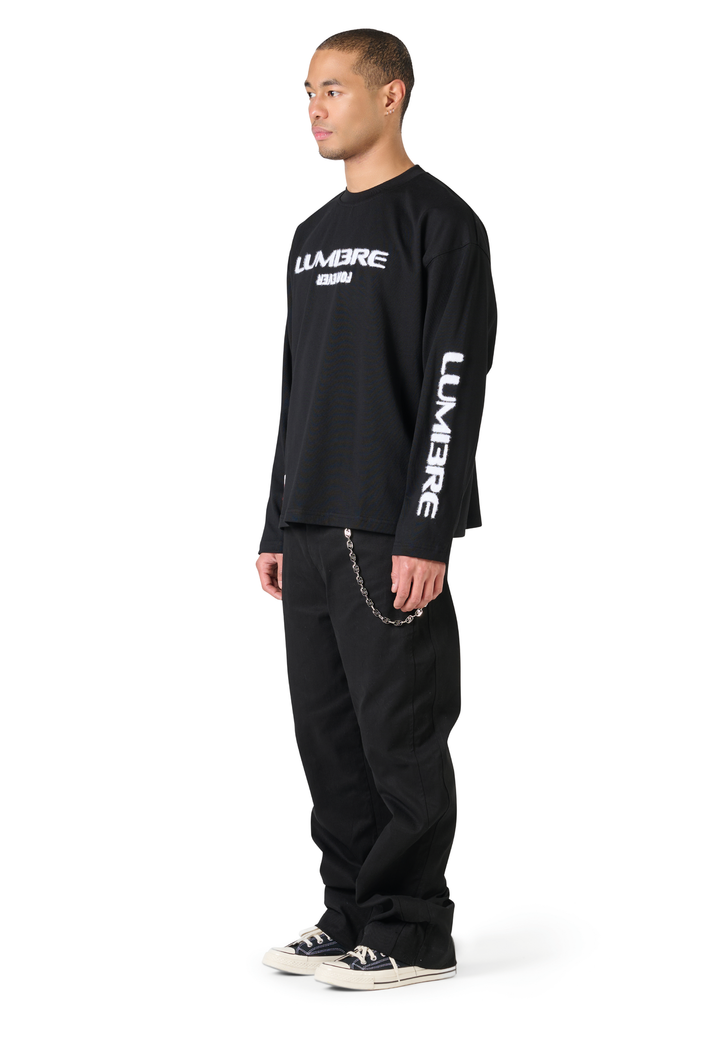The Lumi3re For Ever Longsleeve stands out through texture and detail. Designed in black with an oversized boxy fit, it features puffy Lumi3re logos on the chest and sleeves. A bold yet wearable piece that reinforces the brand’s signature identity.