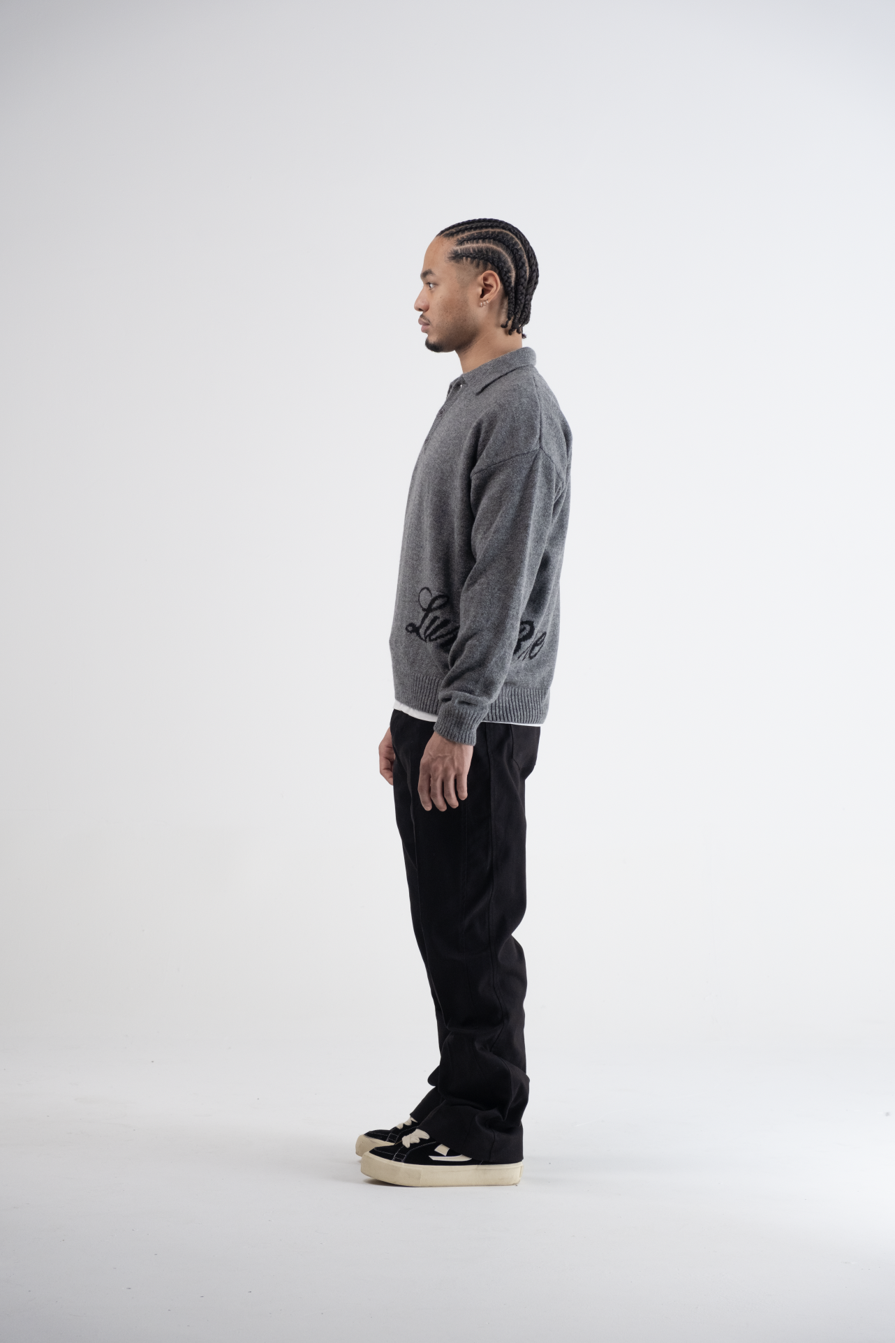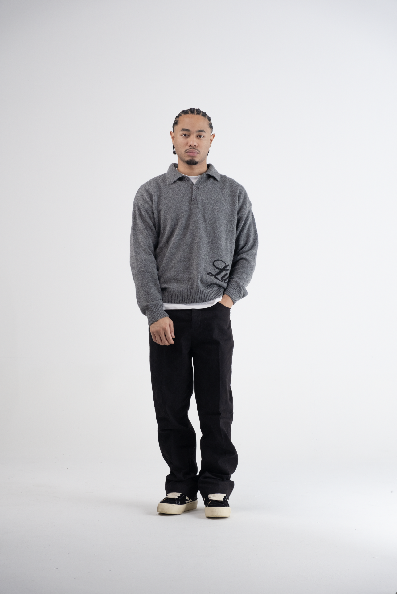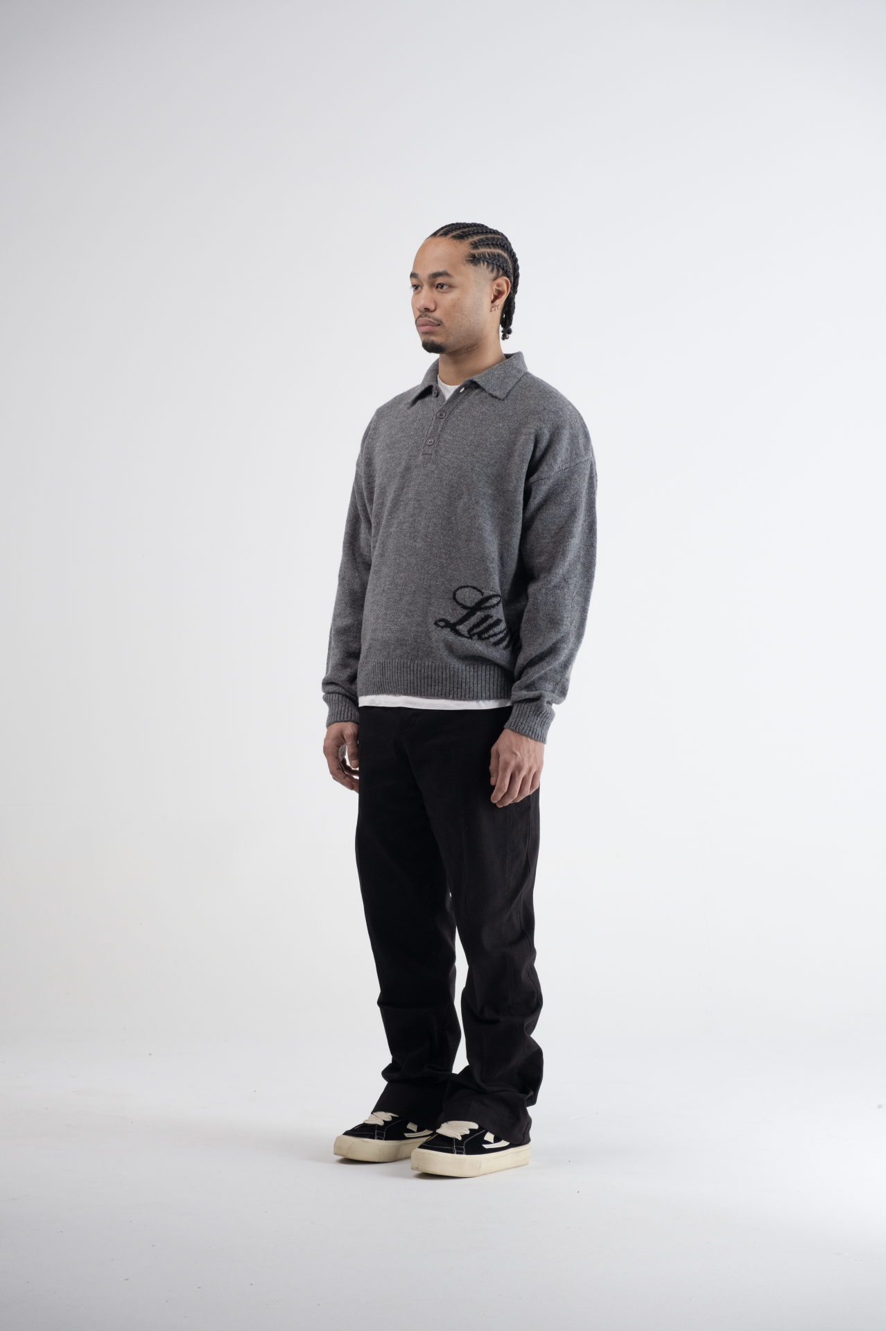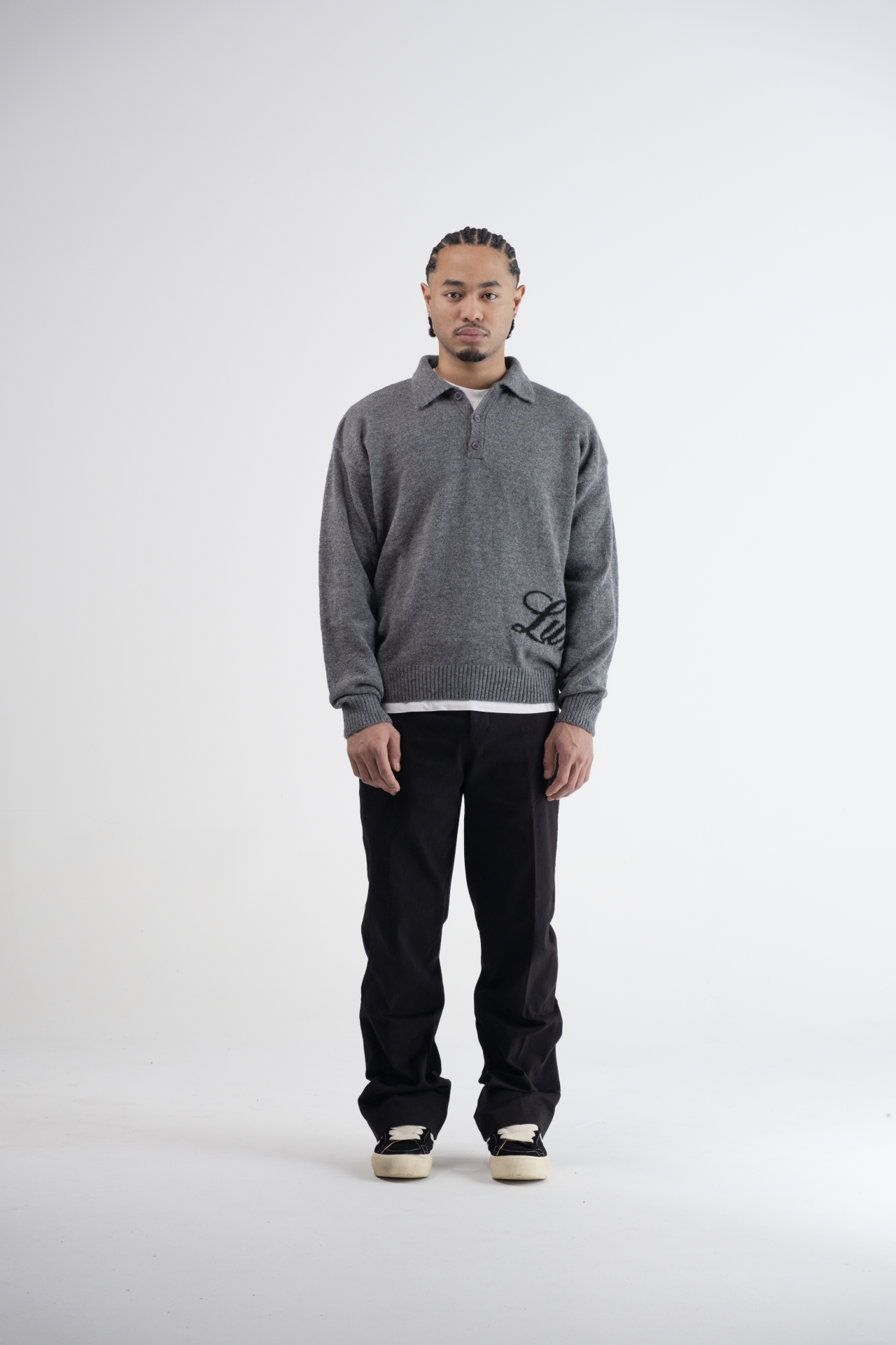 Lumi3re Knitted Long Sleeve Polo Anthracite