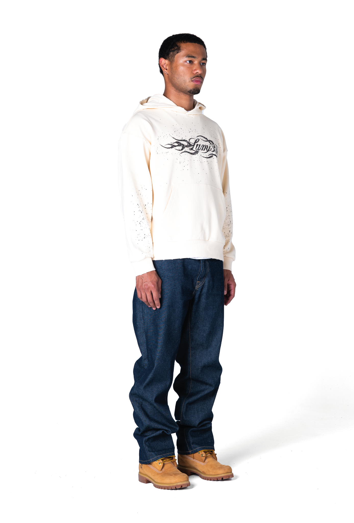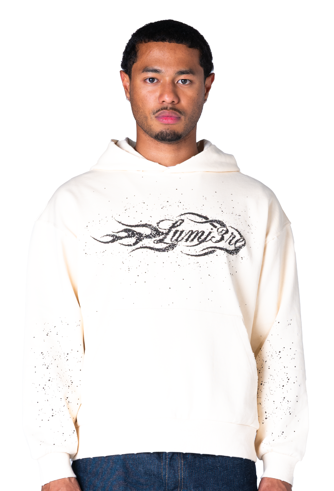 Set your look ablaze with the Spotted Flames Hoodie in off-white, from the Summer Edition drop. Featuring a flame logo graphic surrounded by dotted elements, this 100% cotton hoodie delivers a modern boxy fit and soft feel. A clean, standout piece with the perfect fit for any streetwear rotation.