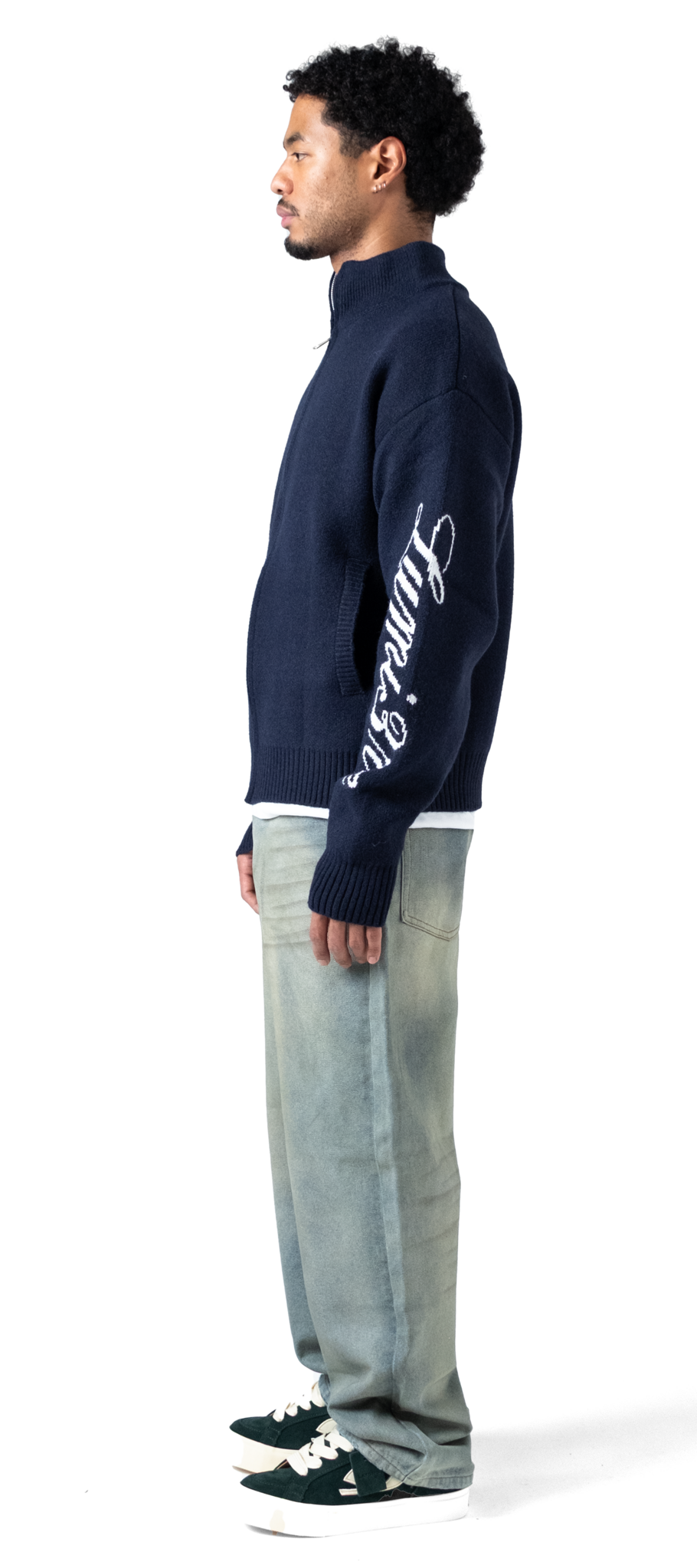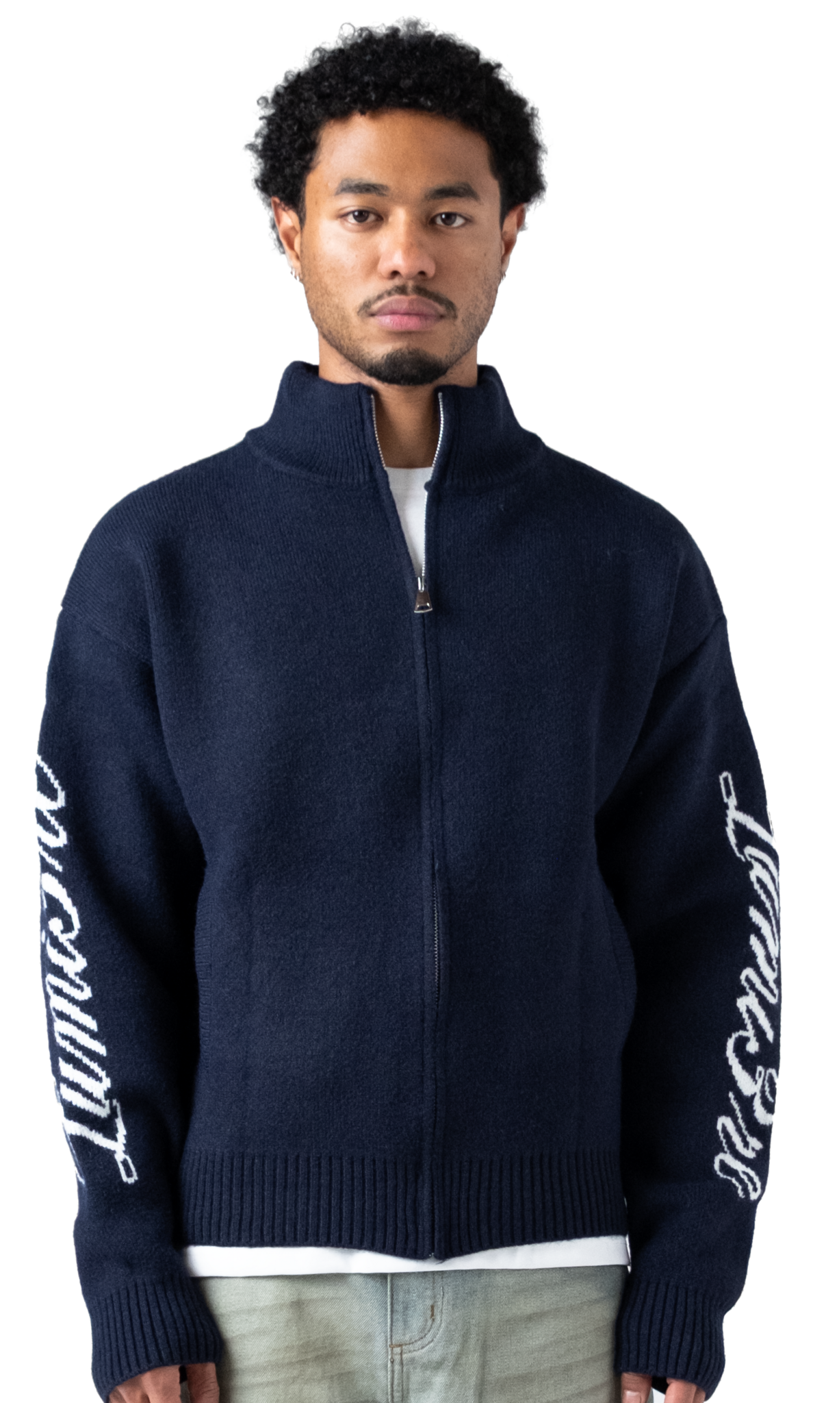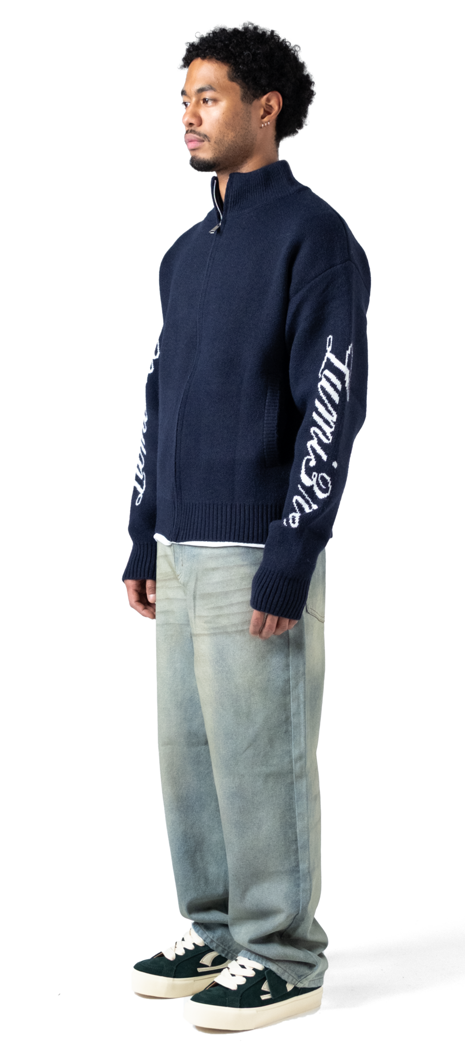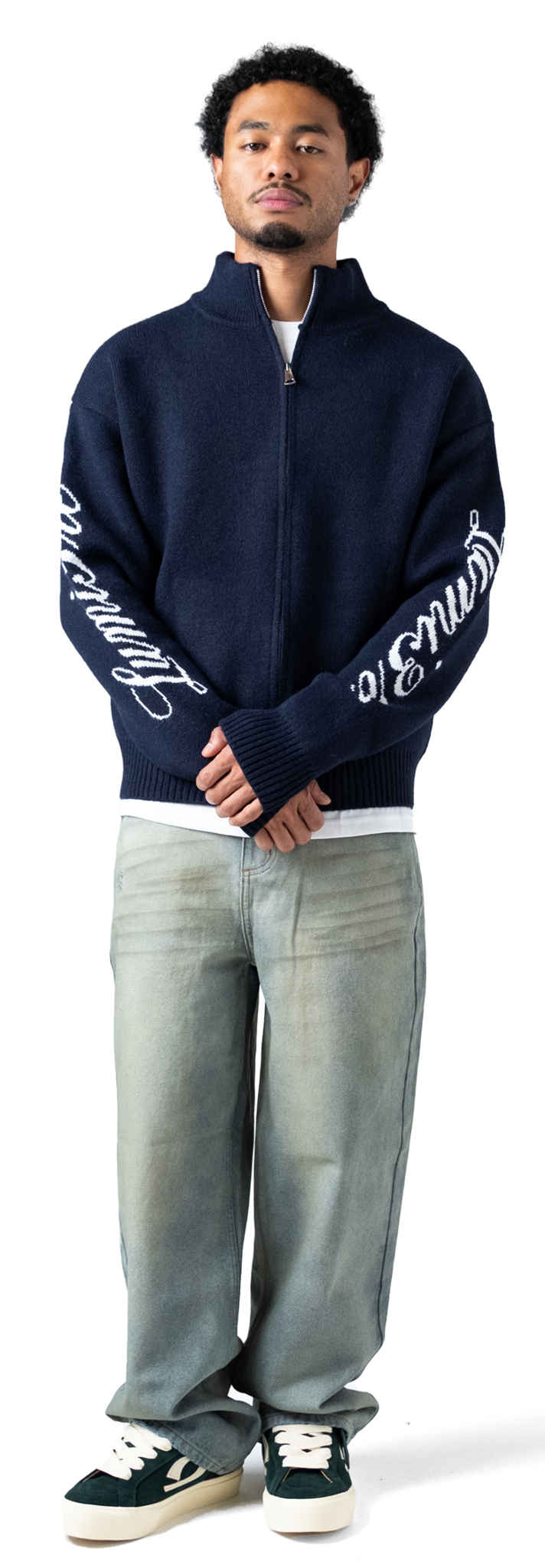 The Lumi3re Cardigan Dark Blue is crafted from premium knitwear with a minimalist approach. Featuring a tonal zipper and subtle Lumi3re branding, this cardigan bridges classic texture with streetwear sophistication.