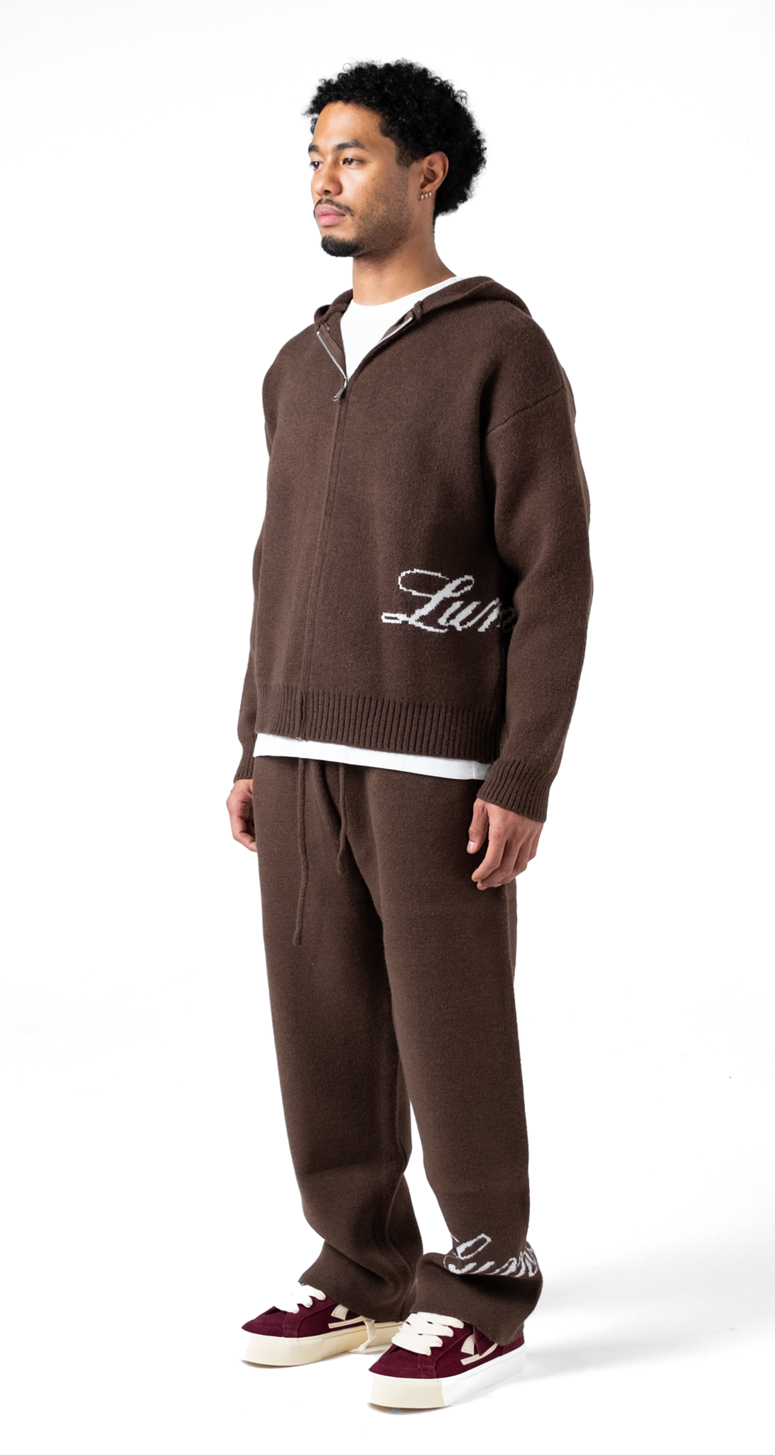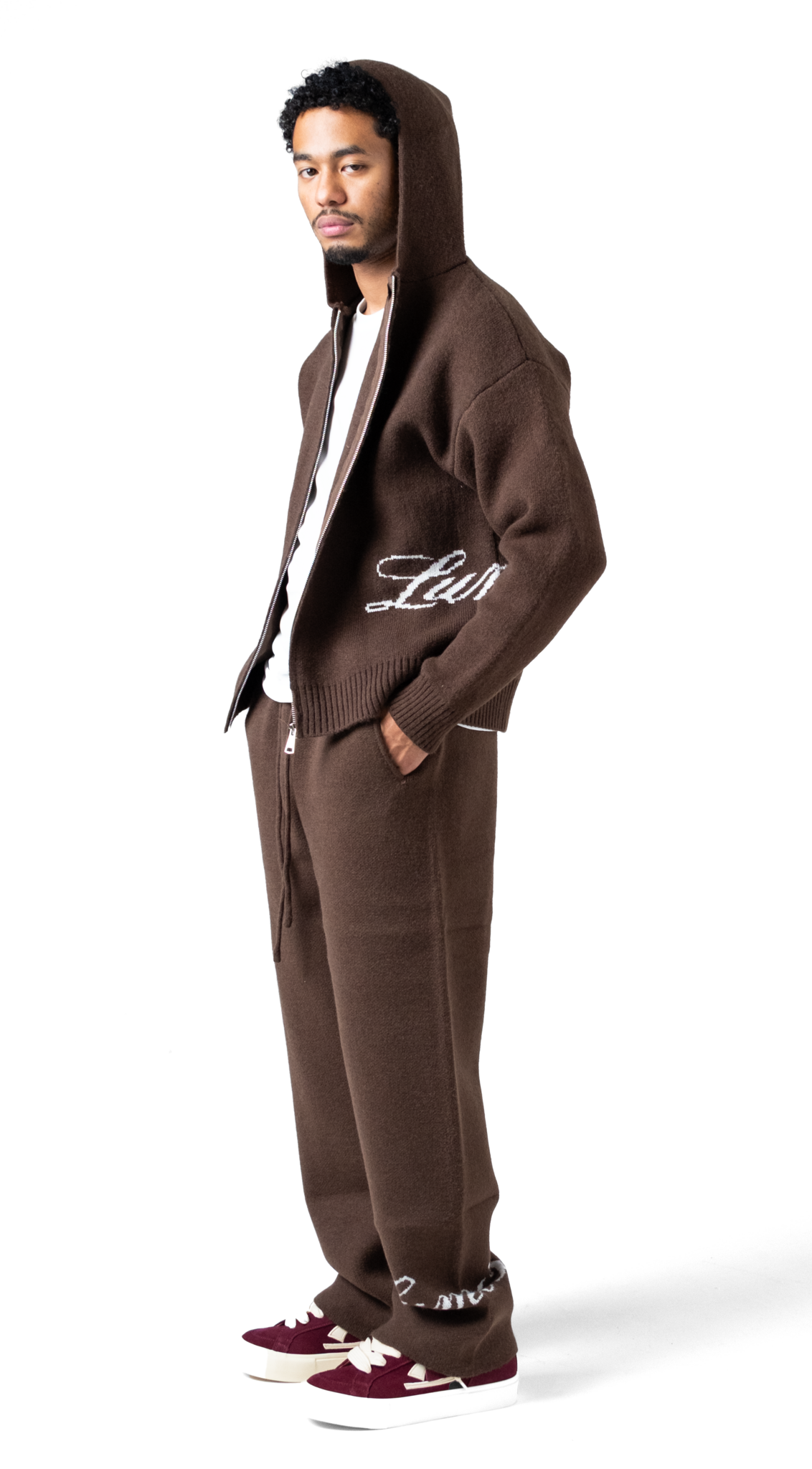 The Lumi3re Zipper Hoodie Brown brings comfort and craftsmanship together. Designed with a full zipper and hood for everyday wear, the soft knit texture provides warmth while maintaining a sleek streetwear look. This piece is suitable for both layering and standout streetwear fits.