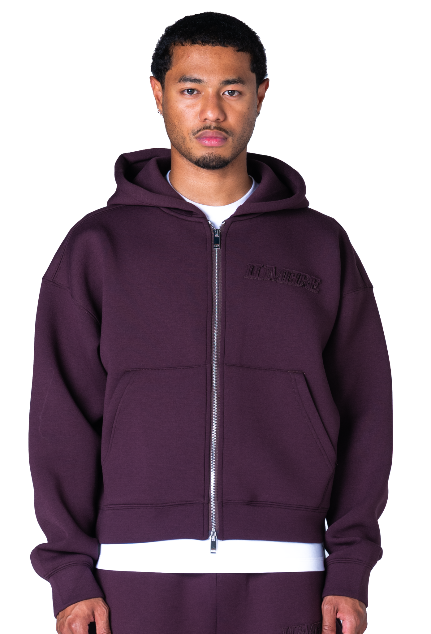 Introducing the Space Scuba Zipper Hoodie in burgundy red, a highlight of our Summer Edition. This zip-up tracksuit top features a Lumi3re patch on the hood, two hand pockets, and a clean silhouette. Made from soft, high-quality fabric, it offers a regular fit perfect for everyday streetwear or travel.