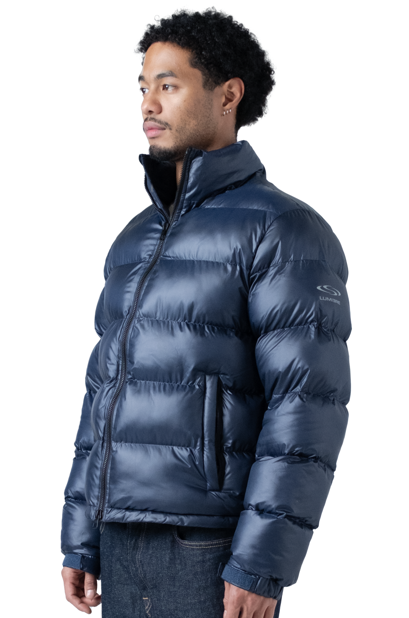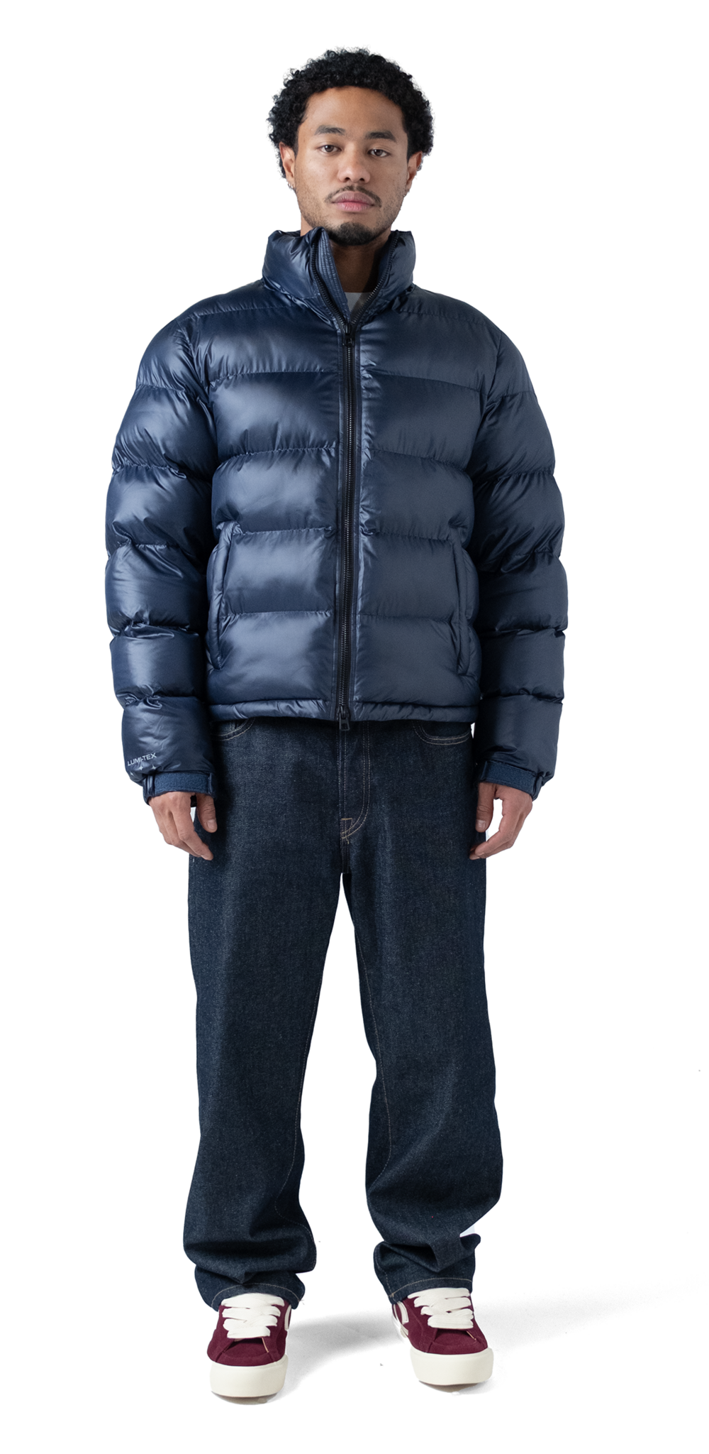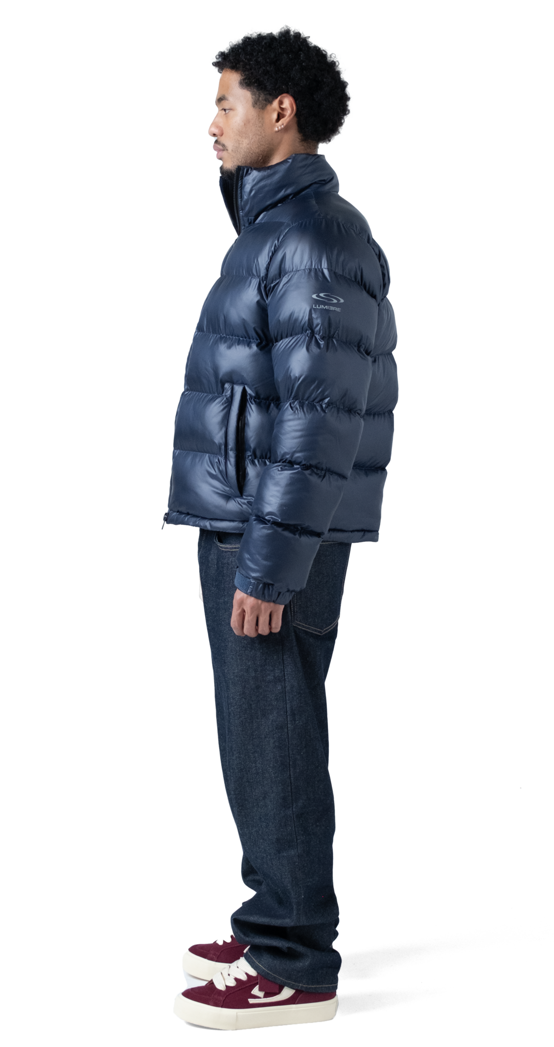 The Wave Hoodless Puffer Jacket in Blue embodies minimal streetwear sophistication. Designed in a regular fit, it sits comfortably around the body while maintaining a clean, structured silhouette. This lightweight puffer is crafted for warmth and versatility, featuring a full zip closure and two functional hand pockets. Finished with the signature Destroyed Wave logo, it delivers a modern outerwear essential that complements any look.