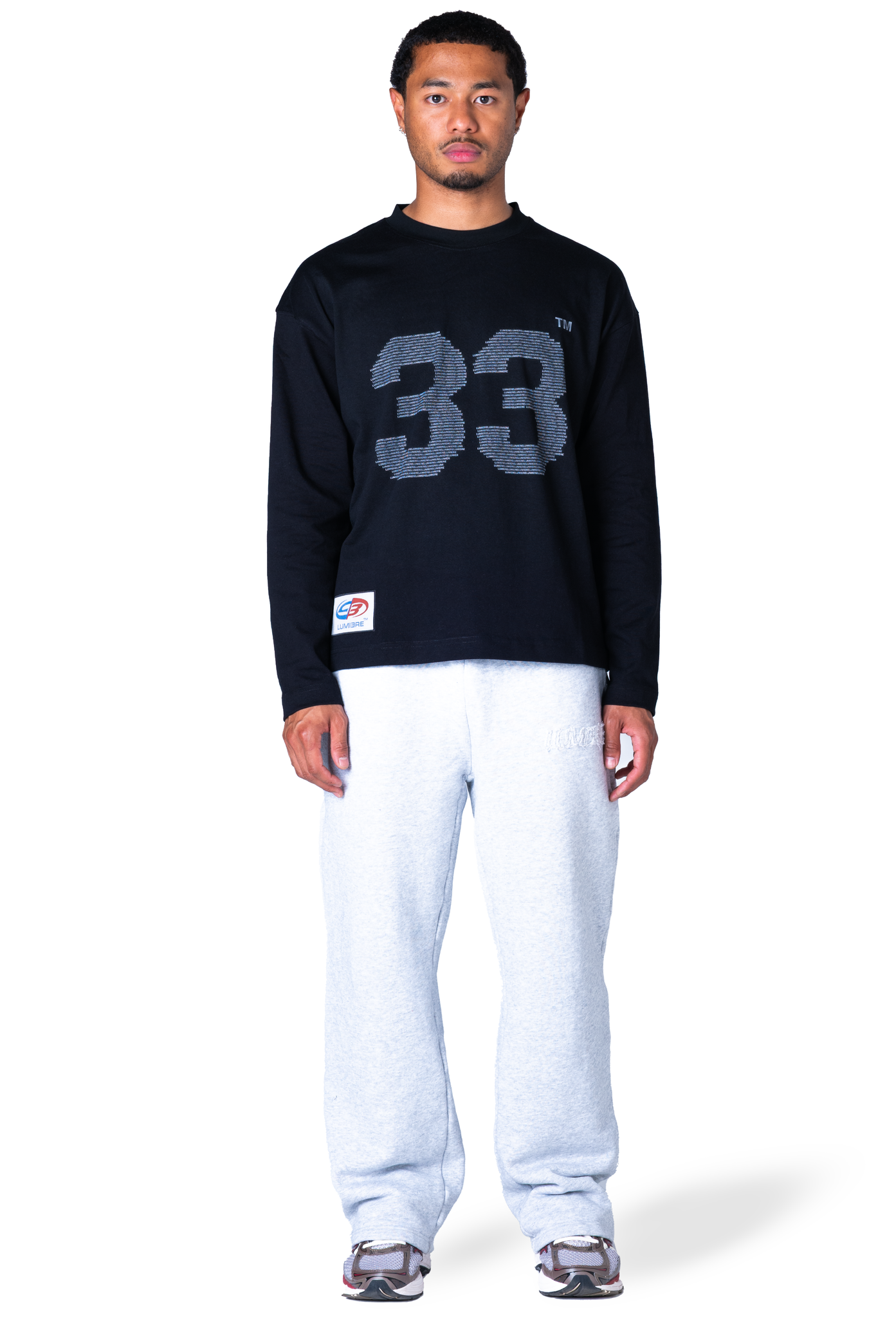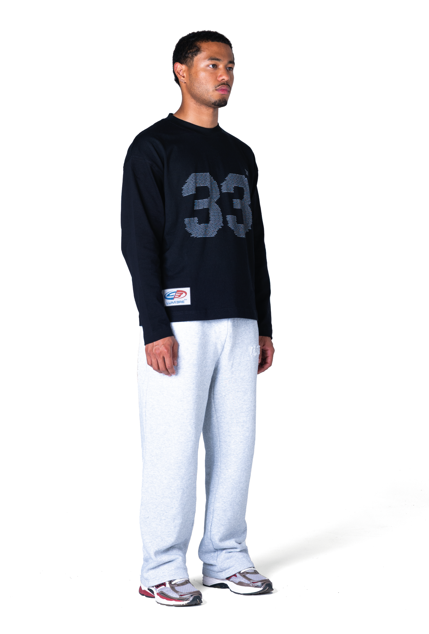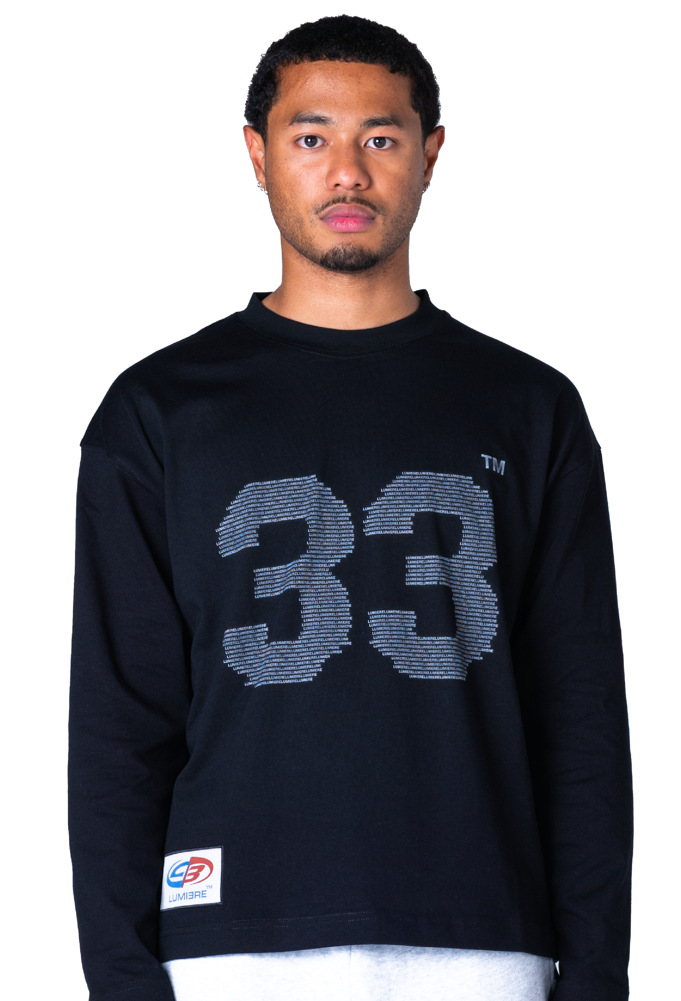 Discover the Thirty-Three Black Long-sleeved, part of our exclusive Summer Edition streetwear collection. Made from 100% cotton, this black long-sleeved shirt features a bold “33” graphic print composed of repeating Lumi3re™ text, and a Lumi3re logo print on the back. A signature Lumi3re logo patch completes the look.